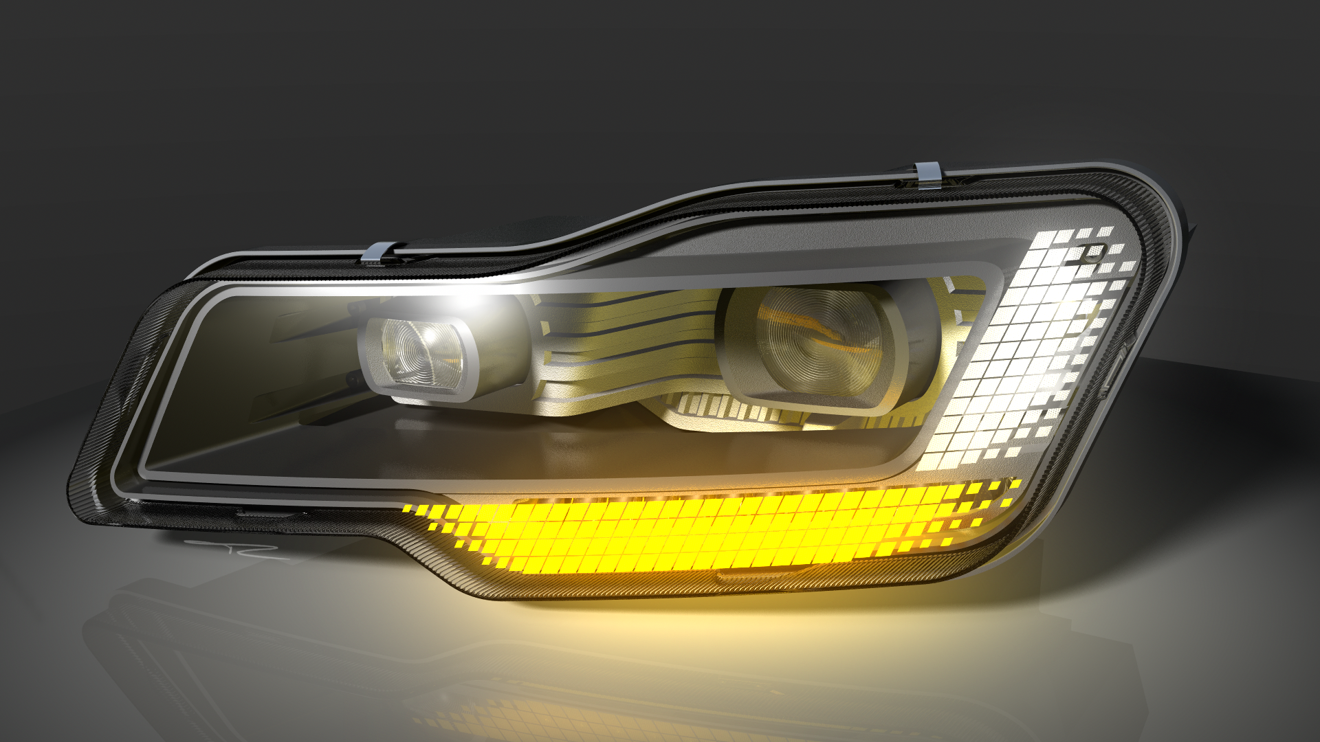 Compared to modern LED headlamps on the market, the overall concept of the sustainable headlamps is designed to be cost-neutral and thus to be realised without additional expenses. In particular, the installation of reused components, the reduction in component requirements and the lower overall weight shall offset the cost of higher-quality materials.