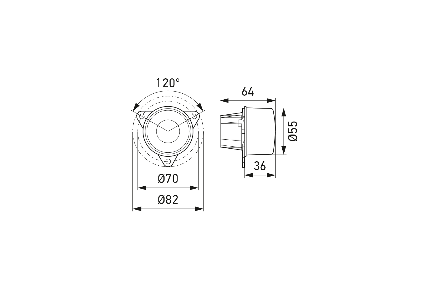 | Befestigung | Mittels drei Schrauben, Löcher Ø 5,5 mm |