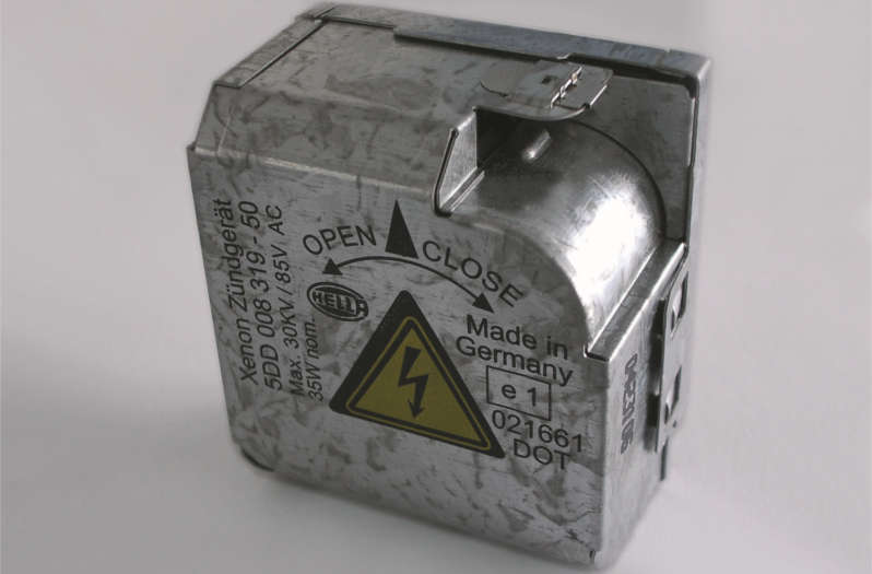 Um conversor de corrente contínua gera, a partir da rede de bordo do veículo, as tensões necessárias para o sistema eletrônico e a lâmpada. A ligação em ponte fornece uma tensão alternada de 300 Hz para operar as lâmpadas de xênon. No aparelho estão integrados vários circuitos de controle e de segurança.