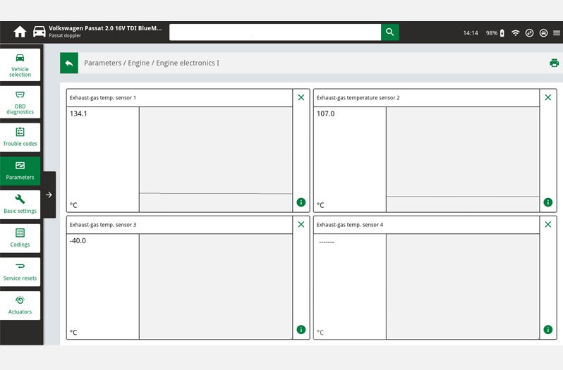 Systemspezifische Schaltpläne können zur Fehlersuche aus den Fahrzeuginformationen herangezogen werden. Hier können die PIN Belegung am Abgastemperatursensor oder die Kabelfarben abgelesen und für weitere Prüfungen verwendet werden.